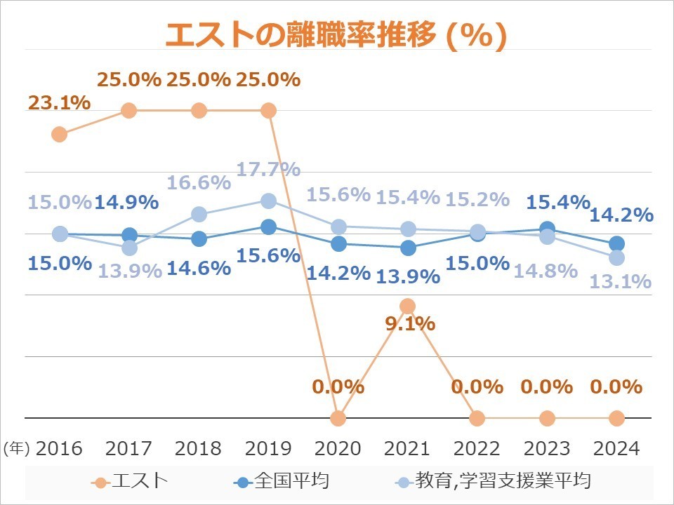 今の時代にあった就業規則、評価制度を導入し、働き方改革にも力をいれることで、全国平均や業界水準と比較しても低い離職率を維持しています。